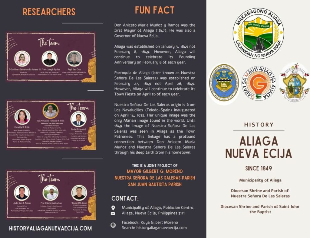 The publication of Cradle and Fields of Faith: The Story of Aliaga, Nueva Ecija. Valuable information and archives were retrieved and re-discovered during the compilation of the History of Aliaga, Nueva Ecija based on records during Spanish, American, and Japanese Period.