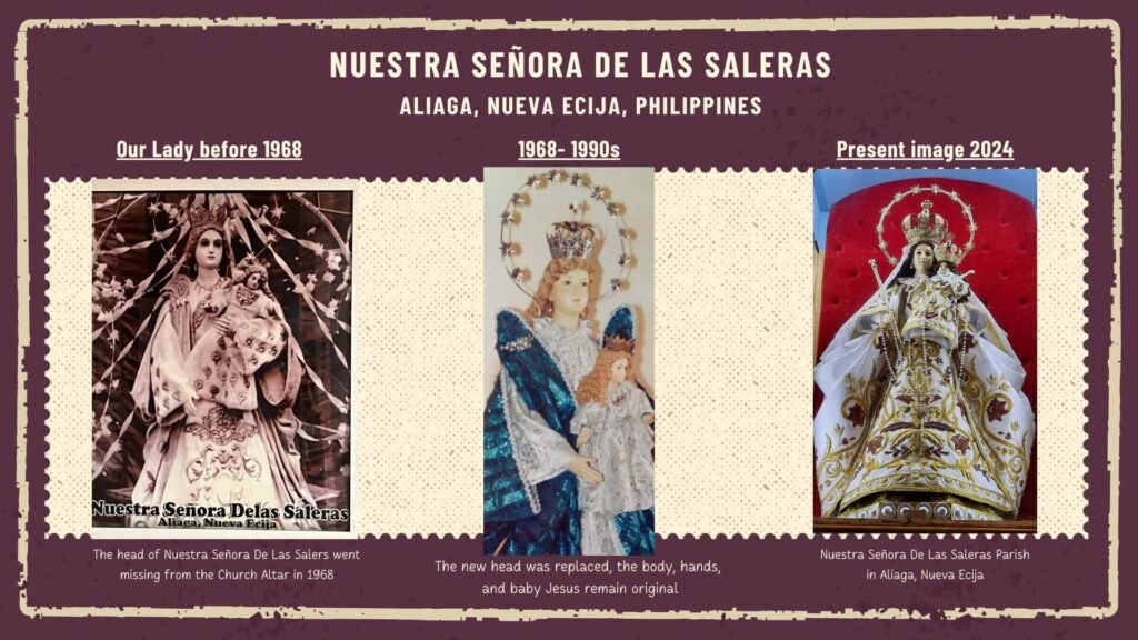Hinding-hindi ko malilimutan ang tagpong ito sa buhay ko. Nakatawag pansin sa akin ang napakagandang imahen ng Mahal na Birhen na may kilik na sanggol sa dibdib. Tila nauupos akong kandila ng mabasa ko sa ibaba ng imahen ang titulong NUESTRA SEÑORA DE SALERA.